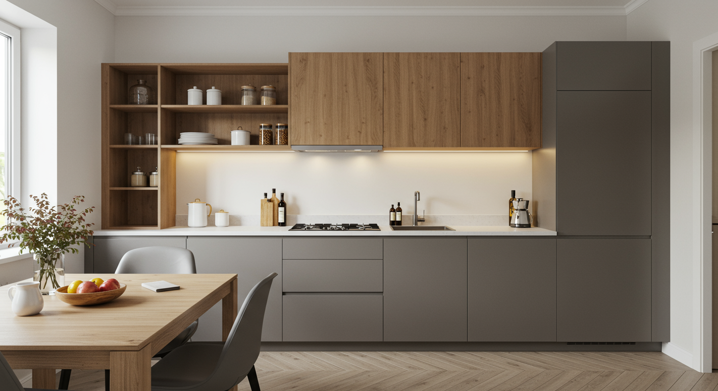 Bob Bakes and Paul Kropp, co-founders of Bakes and Kropp, say that they’ve seen a growing demand for modern kitchen design, but feel that there’s “a gap for a tempered design that offsets the cold, impersonal feeling that deters homeowners from taking the plunge.”To combat this, they’ve refined what they dub the ‘soft modern’ kitchen design. “In our ‘soft modern’ kitchen designs, contrast is key,” they say. “We might choose to use a very high-gloss finish for the cabinetry and offset it with a matte wood finish for open shelving or accent panels.”