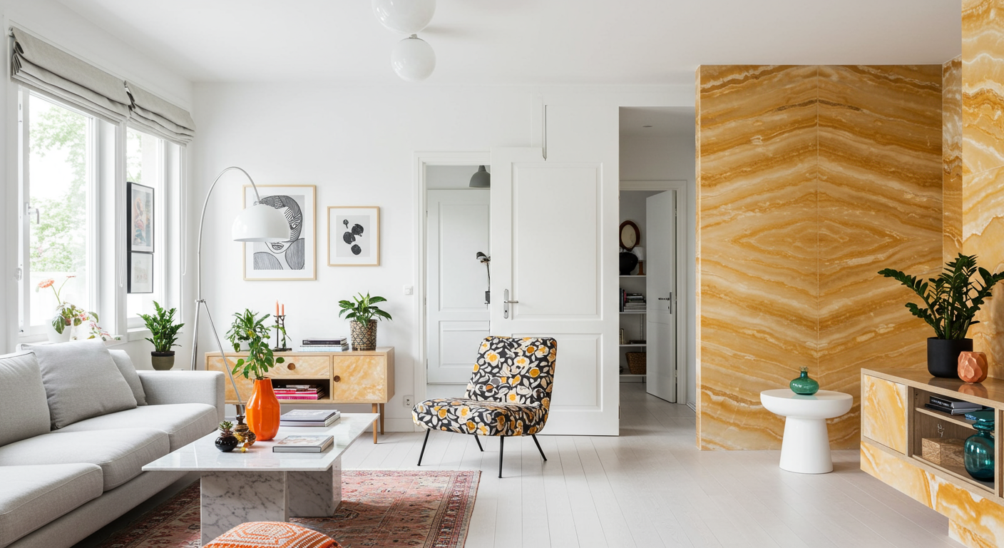 According to Veranda Interior Design Trends, White walls are going to stay, and honey onyx is back in!