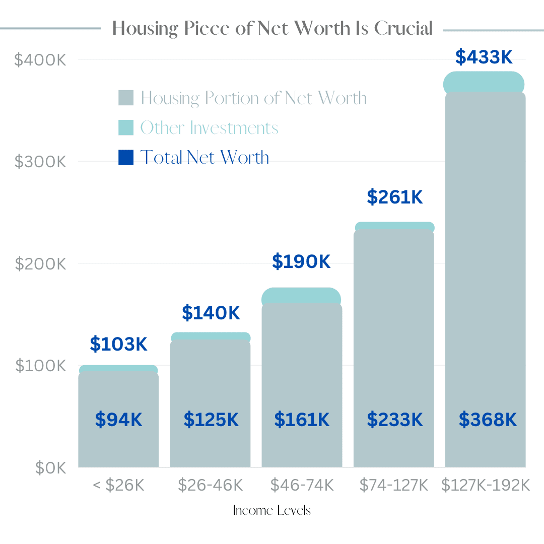 “HOMEOWNERSHIP IS THE LARGEST SOURCE OF WEALTH AMONG FAMILIES, WITH THE MEDIAN VALUE OF A PRIMARY RESIDENCE WORTH ABOUT TEN TIMES THE MEDIAN VALUE OF FINANCIAL ASSETS HELD BY FAMILIES. HOUSING WEALTH (HOME EQUITY OR NET WORTH) GAINS ARE BUILT UP THROUGH PRICE APPRECIATION AND BY PAYING OFF THE MORTGAGE.”