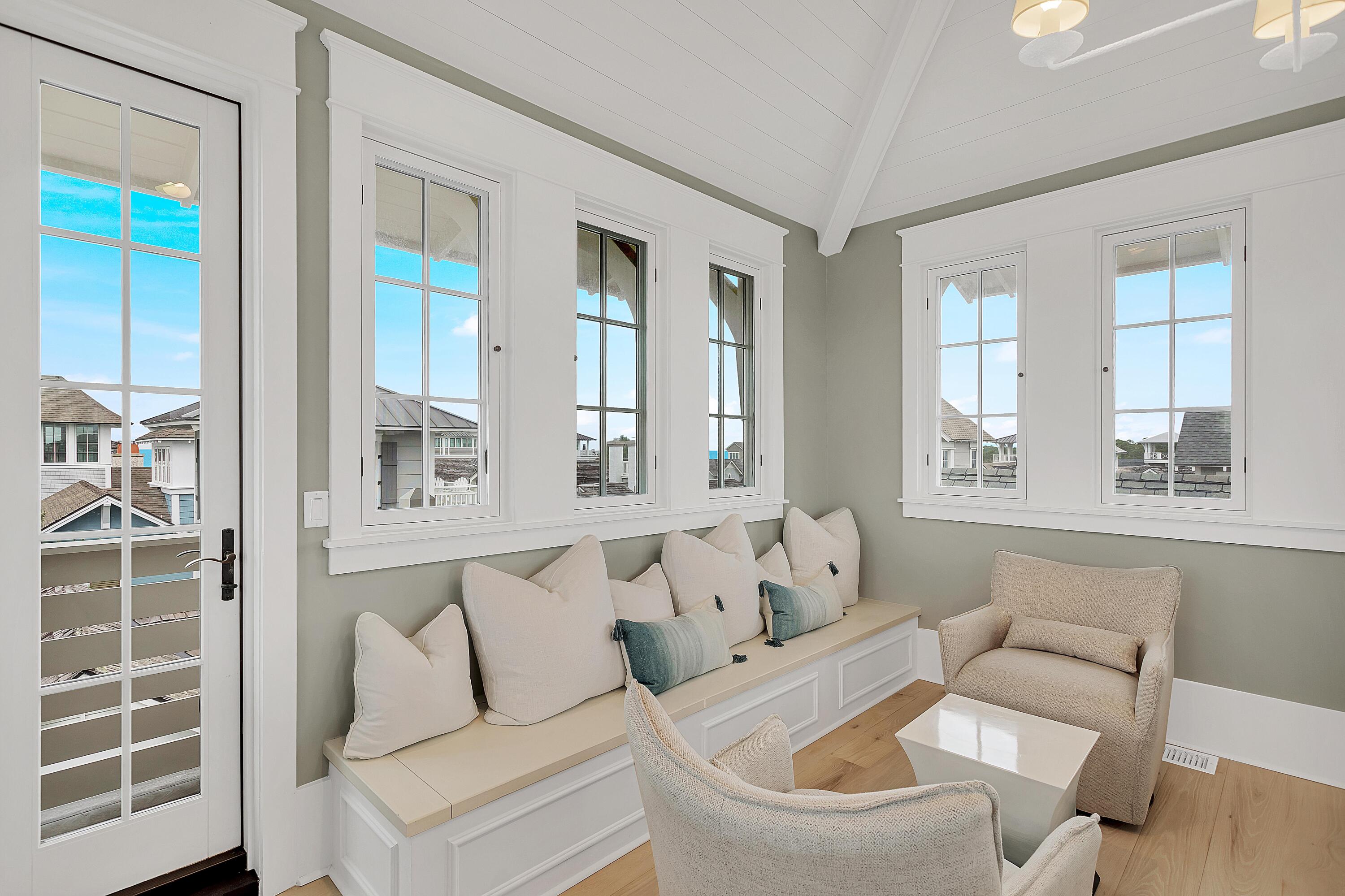 72 S Founders, designed by the renowned architect Geoff Chick, is a spectacular beachside retreat located within the gates of the exclusive WaterSound Beach community. This custom home is immaculate, having recently undergone a complete re-imagination compliments of Summer House Lifestyle. No surface went untouched. The impressive great room sets the tone for this sophisticated beach home. The soaring vaulted ceilings and custom beams add to the great sensation when entering. The oversized kitchen island is perfect for preparing meals and hosting friends, and the Soho Studio tile backsplash adds the perfect pop of color to this entertainer's dream of a space. The living space is accented by custom-ordered furnishings courtesy of Restoration Hardware, Bungalow 5 and Modern History. The custom drapes, pillows and cushions are all creations by Thibaut designs. The lights, sounds and temperature in this impressive room (as with the rest of the home) are all controlled via your phone or the installed iPad operating the Control4 system. The oversized pantry and washroom are just off the great room, along with a half bathroom designed to add some flair to the home. The primary suite on the main living level is an inviting retreat with private access to the screened-in outdoor living area. The bathroom boasts a soaking tub and multi-jet shower with rain head above. The Thibaut wallpaper adds a custom touch to this room, and the dual walk-in closets complete the suite.This level also showcases the climate-controlled wine cellar, complete with reclaimed wood racks that can hold more than enough wine for all guests. Just outside the wine room is the oversized screened porch. This entertaining outdoor area has a vast custom wood dining table, beverage drawers, built-in Wolf Grill and hood, plus an oversized TV. On the other side of the porch is the fully independent carriage house. This suite has a kitchenette, a built-in dining area, and a separate living area. Elevated ceilings and ample windows create a sense of wow for this living quarters. The Kelly Hoppen canopy bed will tempt you never to leave this room. The first level boasts a grand entry hall with custom inlaid marble tiling and an overhead chandelier created by Arterriors. Dual guest suites on this level both have en suite bathrooms. Both bedrooms are highlighted by John Robshaw bedding, Matouk and Thibuat pillows and drapes, and art by renowned local photographer Modus Photography. Rugs by Dash & Albert cover the floors, and new quartz vanities and Waterworks plumbing round out these beautiful guest suites. Just down the hall is an additional bedroom doubling as an in-home office space with an attached full bathroom, equally appointed as the other guest suites. This level is completed by a bonus entertaining room that works for additional sleeping accommodations. Pull out the sleeper sofa and pull down the retractable viewing screen to create the perfect movie-watching spot. The linens, pillows, rug and artwork are all on par with what you would expect in a home of this calibre. Outside the theatre room, you find the first-level outdoor living area featuring an outdoor fireplace, sitting area and spa. The large spa with a spillover edge and waterfall feature create a wow factor upon approaching the home. Climb the stairs or take the elevator to the third level. You find a sitting area separated from the bunk room by a vast custom barn door. Built-in bunks provide additional sleeping for family and friends, and a full bathroom completes this level. There is one more set of stairs to climb to the enclosed watchtower. Here you find lounge-level seating plus a bar top and stools looking through the windows and out at the Gulf of Mexico. When it is time to go to the beach, hop on your private golf cart (included in the sale) and drive right down the the beach! The large "Dunesider" pool is just steps away (less than 150 to be exact) with poolside lounging and a seasonal cafe. For more activity, the private exclusive WaterSound Beach Club is conveniently located right next door with multiple pools and dining options.This home has strictly been used as a vacation home; never a rental. WaterSound Beach is the premier gated Gulf front community on Scenic HWY 30A, offering nearly 1 mile of unspoiled private beach. Picturesque wooden boardwalks meander throughout the community, all leading past puttering parks, ponds and streams and ultimately to the white sand beaches the area is known for. The private beach club is next door, along with numerous restaurants. 72 S Founders is tucked away, privately behind the gates of WaterSound Beach, but is conveniently close to all the restaurants and shopping the 30A area offers.